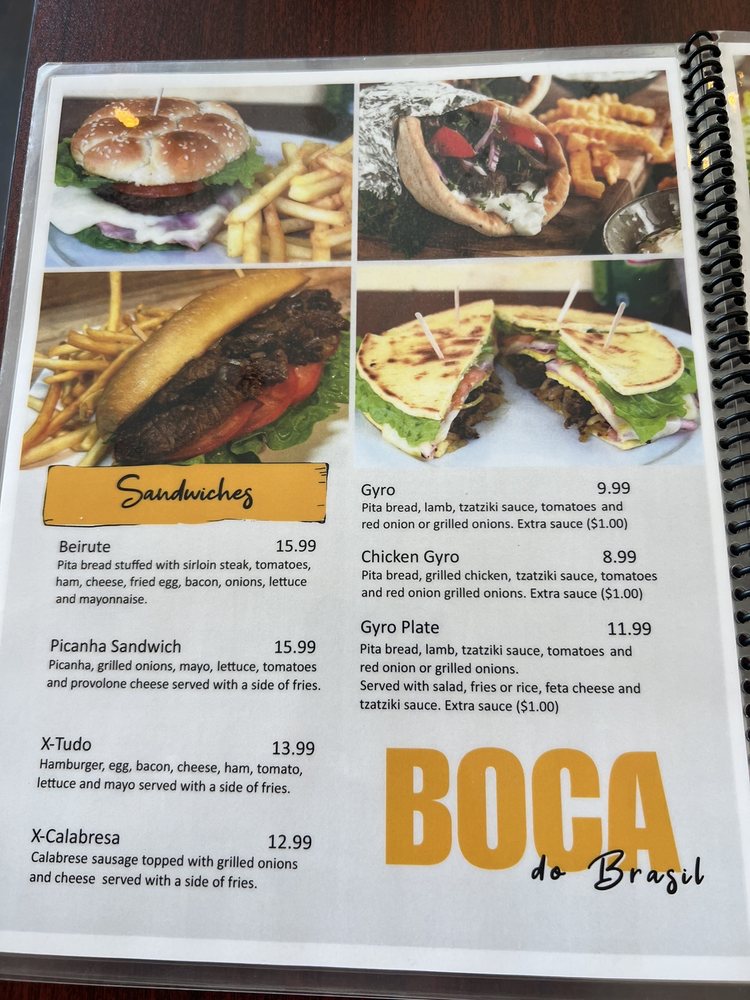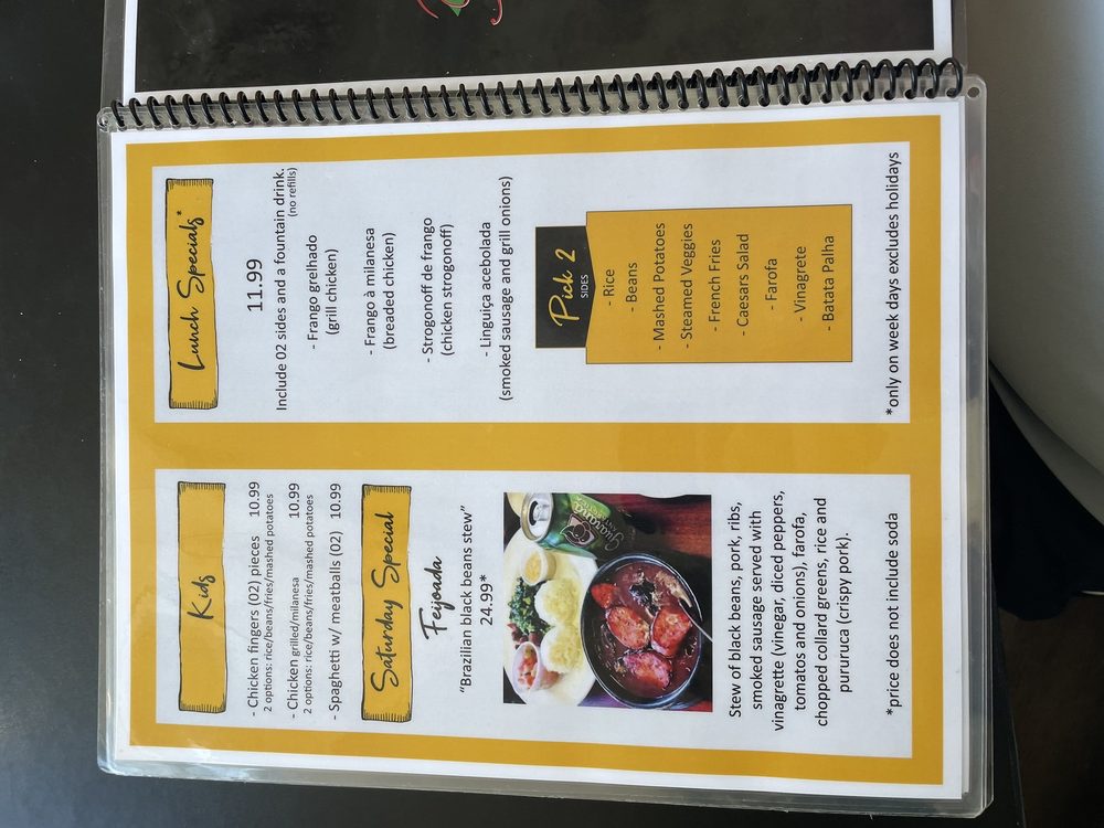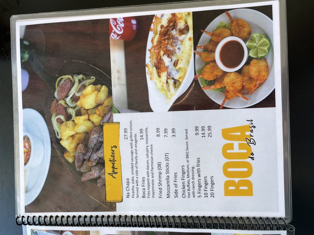 Introducing the menu at Boca Do Brasil, a Brazilian restaurant in Las Vegas, offering a delicious fusion of Brazilian, Pizza, and Sandwiches. This hidden gem provides a cozy and authentic dining experience, perfect for those craving homemade Brazilian comfort food. The menu features a variety of Brazilian appetizers like Coxinha, Kibe, and Bolinho de Carne, along with Na Chapa Picanha and Boca Fries for those looking for a hearty start. Salads like Caesar Salad and Tuna Salad offer lighter options. The star of the menu is the picanha, a tender and flavorful dish that keeps customers coming back for more. Don't miss out on the Brazilian desserts like Brigadeiro and cheese balls. With friendly staff like Heitor and Gabriel, Boca Do Brasil offers a truly memorable dining experience that showcases the best of Brazilian cuisine. Make sure to visit this spot for an authentic taste of Brazil.